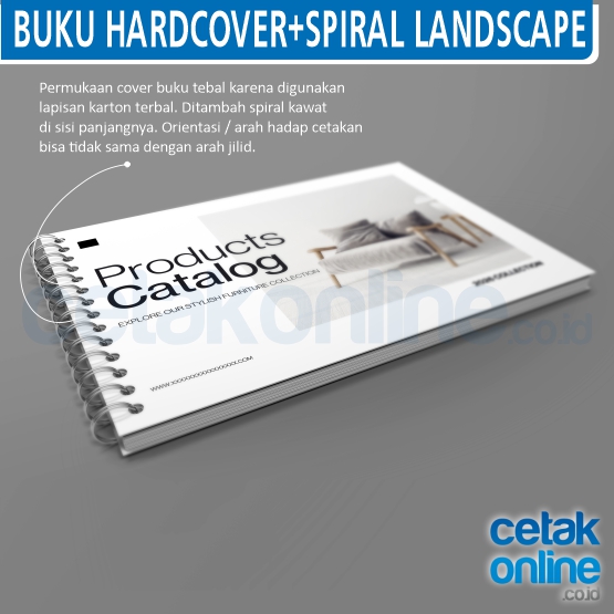 Hard cover + Spiral kawat : setelah di hardcover, bagian cover (hardcover) disatukan dengan spiral kawat.
