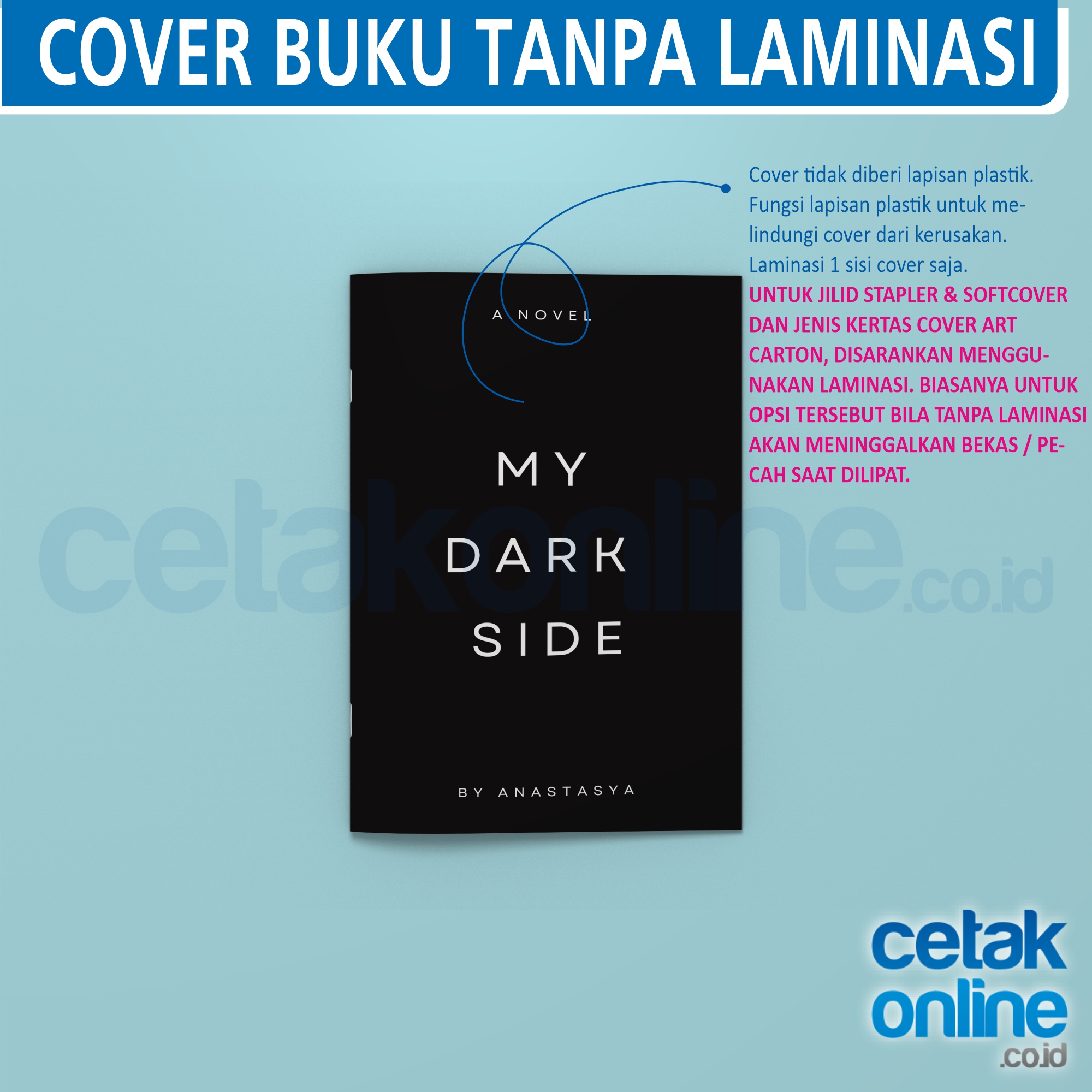 Tanpa laminasi : tidak diberi lapisan plastik permukaan covernya. Untuk jilid stapler, tanpa laminasi bisa jadi pecah ketika dilipat untuk isi/cover kertas artcarton ke atas.