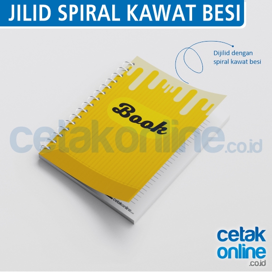 Spiral kawat : di bagian yang dijilid dilubang, dan diberi kawat untuk menyatukannya. Kawatnya berbentuk spiral.