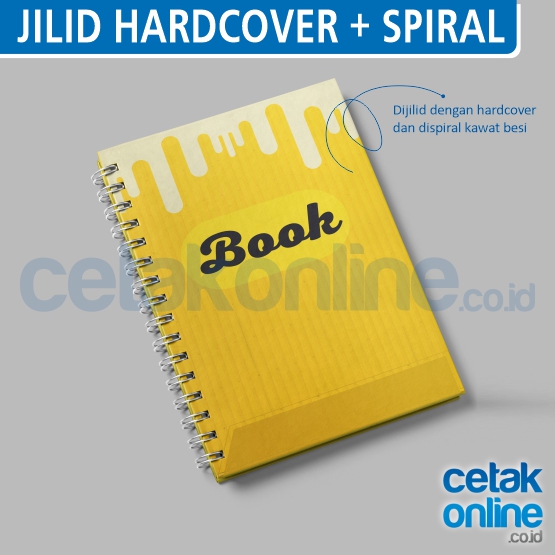 Hard cover + Spiral kawat : setelah di hardcover, bagian cover (hardcover) disatukan dengan spiral kawat.