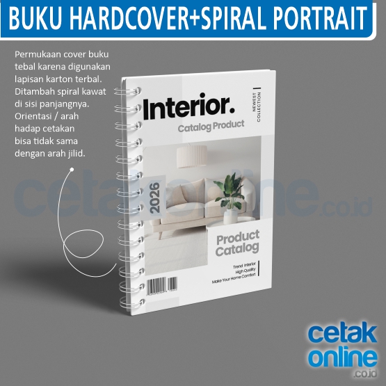 Hard cover + Spiral kawat : setelah di hardcover, bagian cover (hardcover) disatukan dengan spiral kawat.