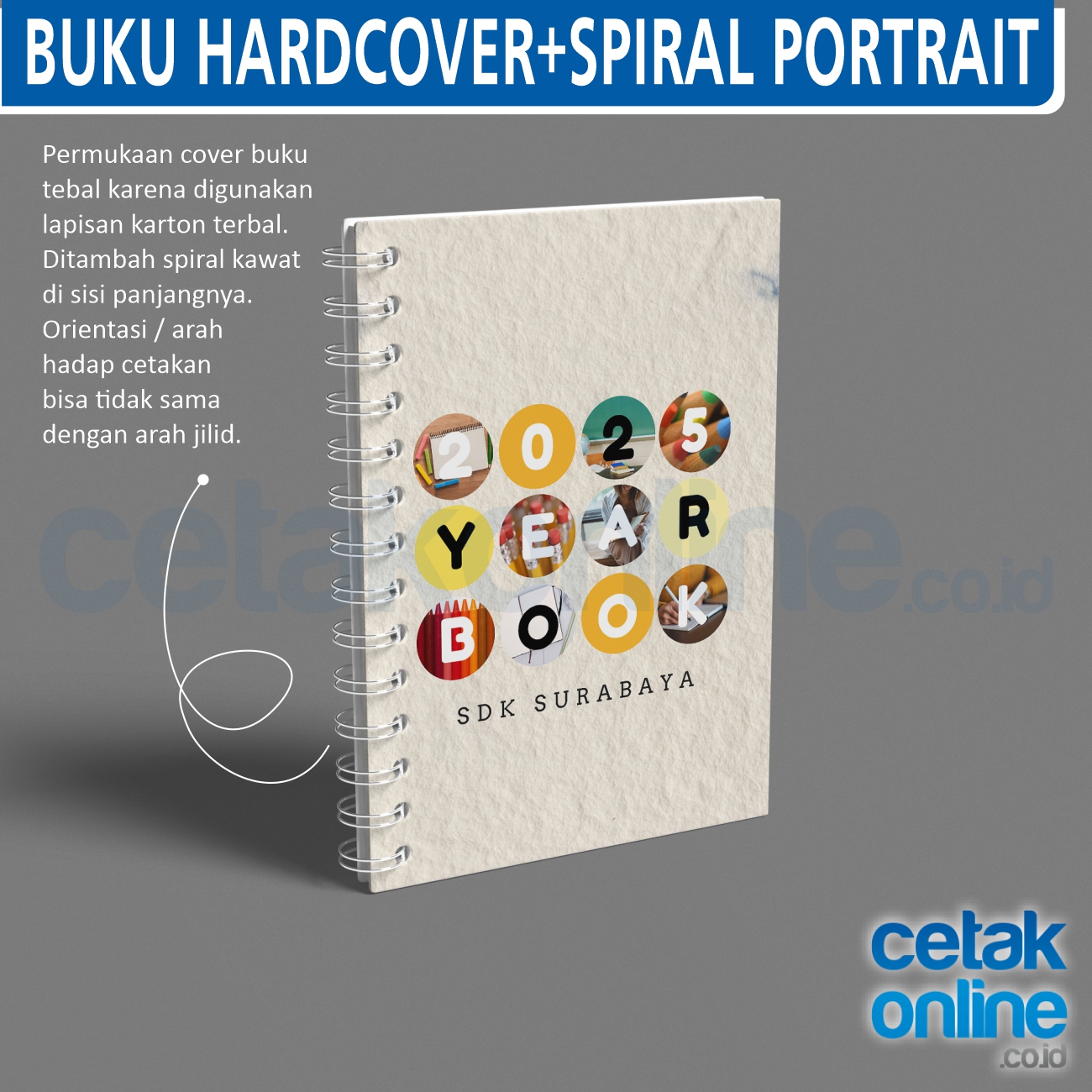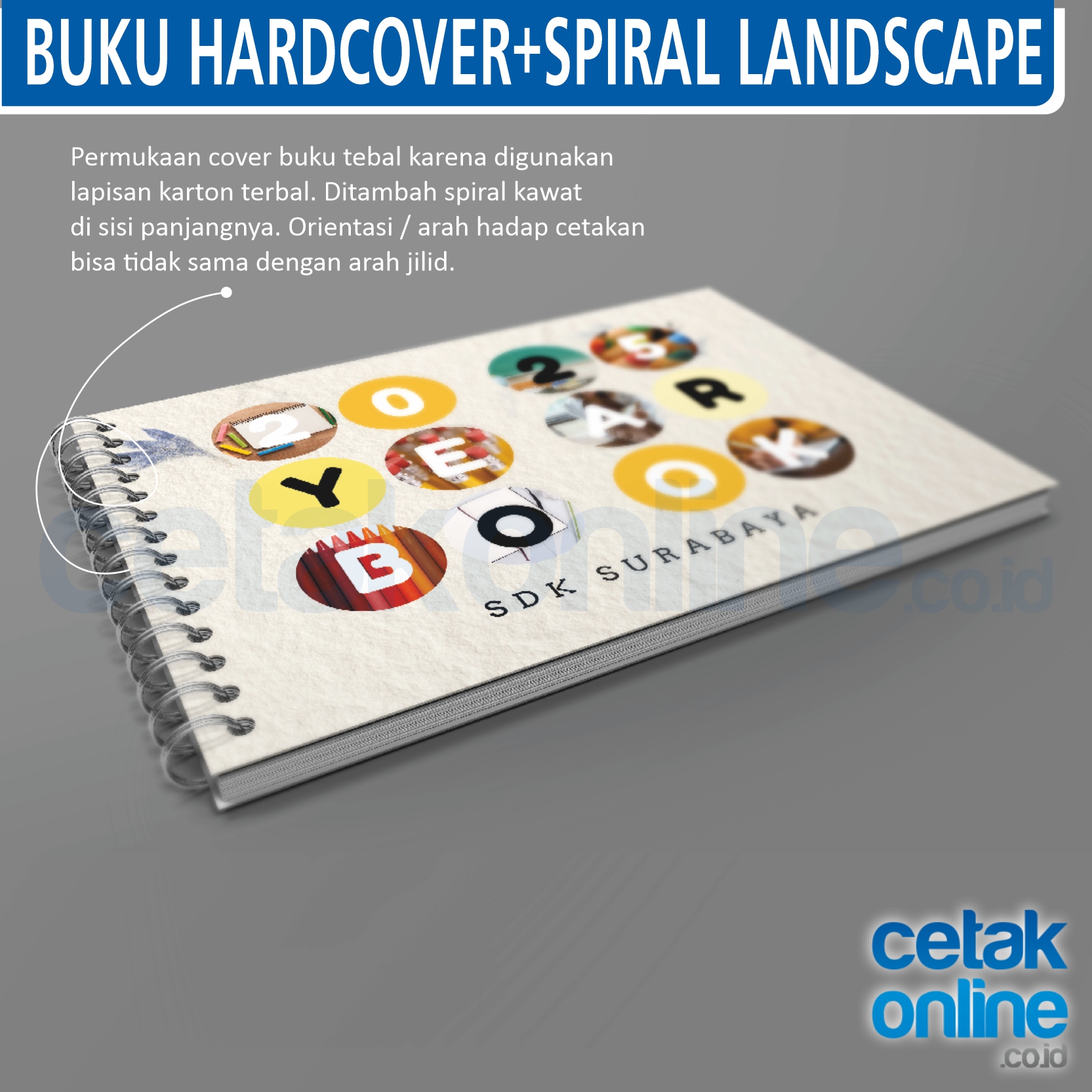 Hard cover + Spiral kawat : setelah di hardcover, bagian cover (hardcover) disatukan dengan spiral kawat.