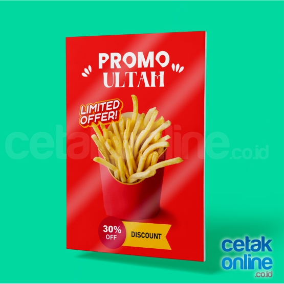 Materi promosi lapisannya digunakan foamboard, berbentuk seperti spon kaku dengan ketebalan 5mm. Dilapisi bagian depannya stiker yang dicetak dengan mesin ecosolvent.