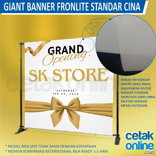 * Banner / Vinil / Fronlit / MMT standart China : biasanya bahan ini digunakan untuk banner / spanduk outdoor. Dicetak dengan menggunakan mesin outdoor.