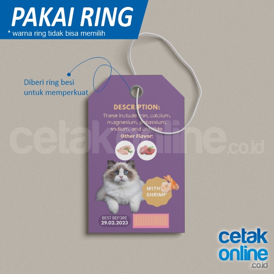 Kamu juga bisa memilih jenis ring yang dipasang di lubang hangtag. Juga tali yang digunakan.