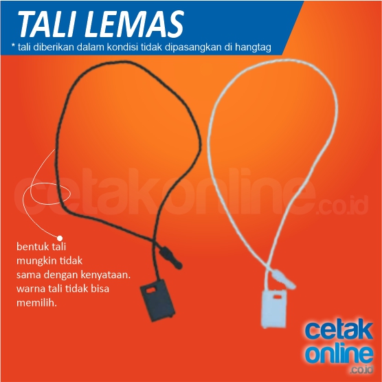 Tali untuk hangtag tidak kami pasangkan ke setiap hangtag. Hanya kami berikan tali terpisah dari hangtag.