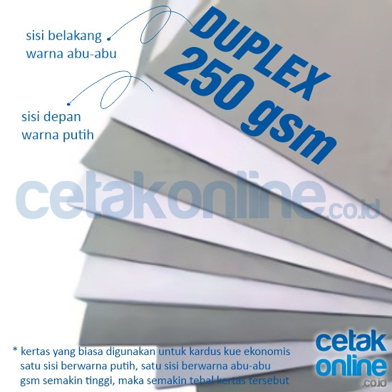 Kertas ini biasa digunakan untuk packaging. Satu sisi dari kertas ini berwarna putih, sisi belakangnya berwarna abu-abu. Cocok juga digunakan