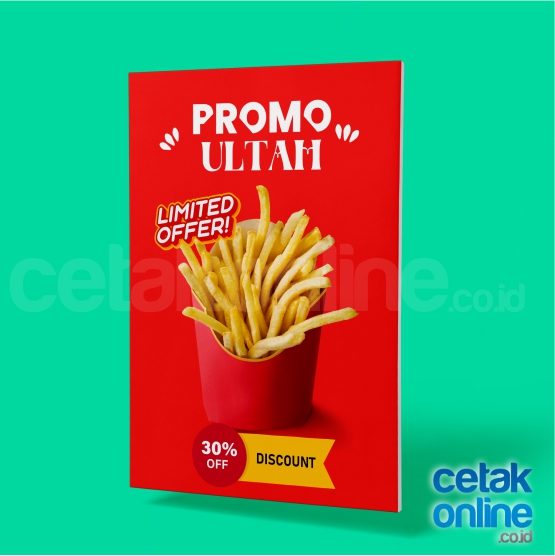 Materi promosi lapisannya digunakan impraboard, berbentuk plastik bergelombang, kaku dengan ketebalan 5mm, tahan air, kuat. Dilapisi bagian depannya stiker yang dicetak dengan mesin ecosolvent.