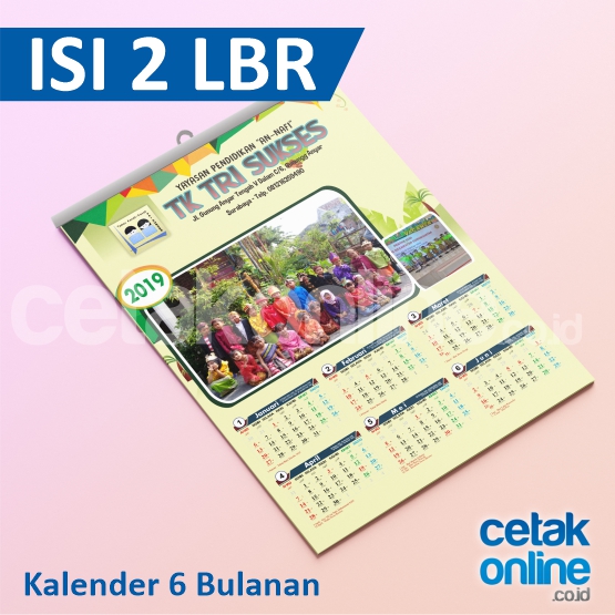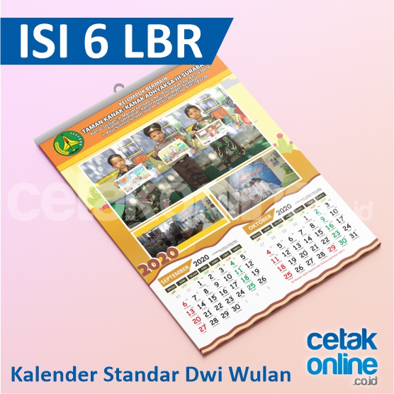Kalender 6 lbr : dalam 1 eksemplar terdapat 6 lbr. Tiap lembar diisi 2 bulan kalender atau biasa disebut kalender standar