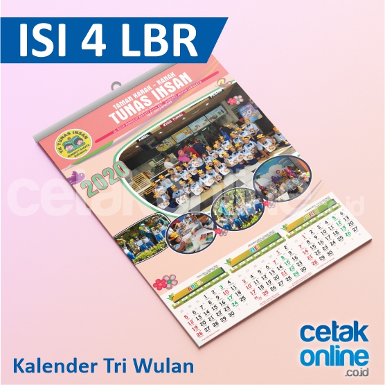 Kalender 4 lbr : dalam 1 eksemplar terdapat 4 lbr. Tiap lembar diisi 3 bulan kalender / triwulan