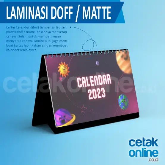 Saat ini kalender meja (desk calendar) sangat umum digunakan untuk promosi suatu produk atau perusahaan. Kalender meja adalah salah satu bentuk promosi paling efektif untuk usaha. Karena pasti digunakan dan dilihat setiap hari sepanjang tahun.