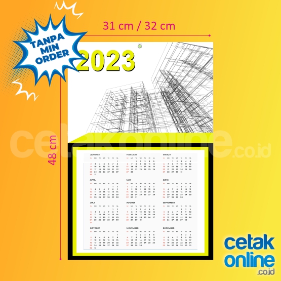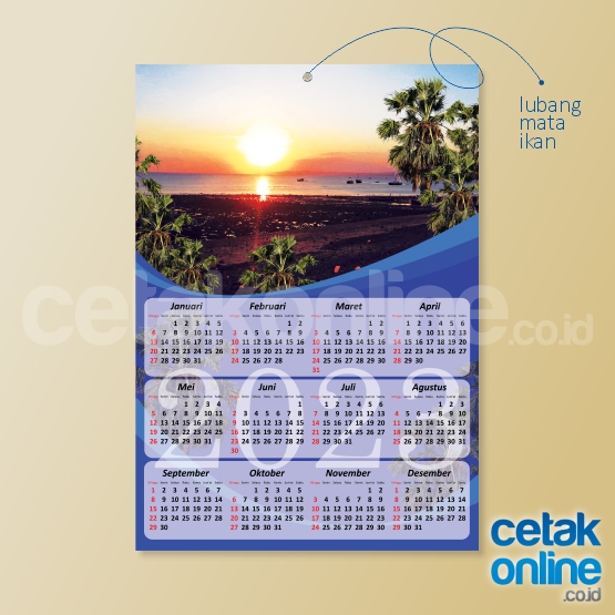 Jenis kalender poster ini dicetak 1 sisi / 1 muka dan hanya dicetak dari 1 lembar kertas