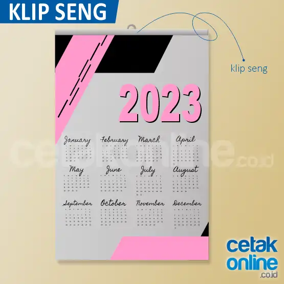 Klip seng : untuk menggantung kalender dibagian atas. Berbentuk klik seng horizontal dengan bagian atas ada lubang untuk menggantung.