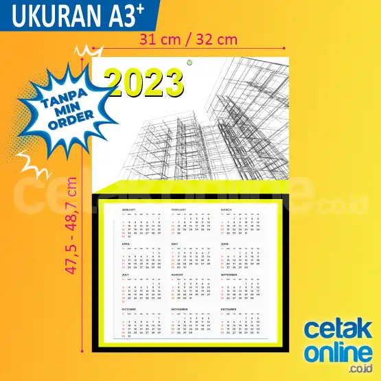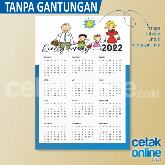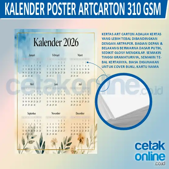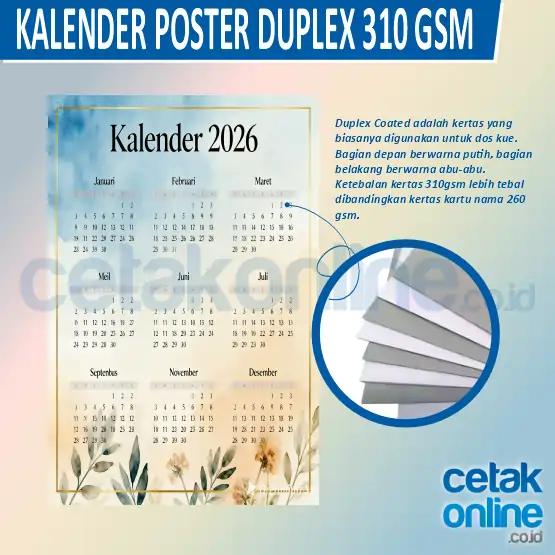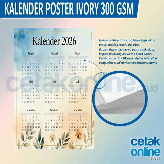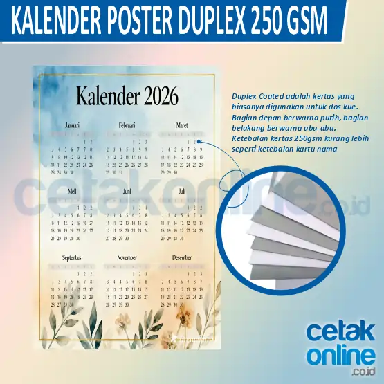 Jenis kalender poster ini dicetak 1 sisi / 1 muka dan hanya dicetak dari 1 lembar kertas