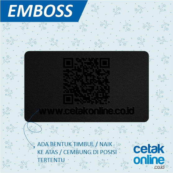 * EMBOSS : emboss memberikan efek timbul ke atas permukaan. Permukaan kertas yang diembos akan cembung, naik ke atas. Sedangkan bagian bawah dari yg diembos, akan cekung.