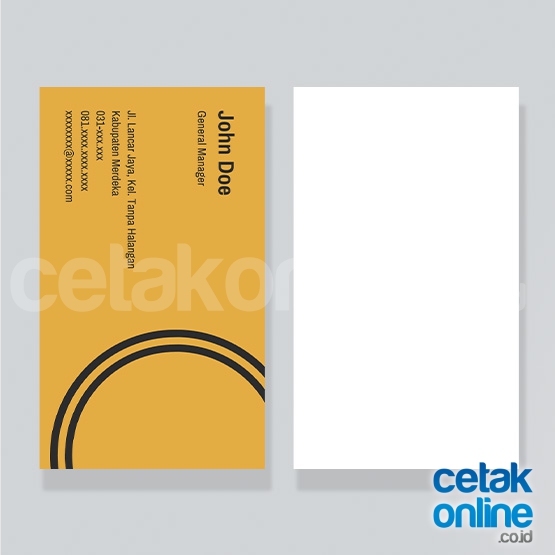 Kartu nama ini terbuat dari kertas sintetik, tidak mudah dirobek. Bisa dikatakan seperti plastik. Warna material bahan putih solid. Ini yang bisa dicetak
