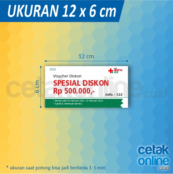Kupon atau voucher yang kami bisa custom ukuran, namun kami menyarankan ukuran-ukuran tertentu yang ada di opsi pilihan.