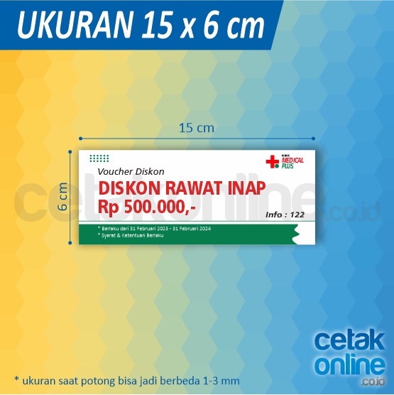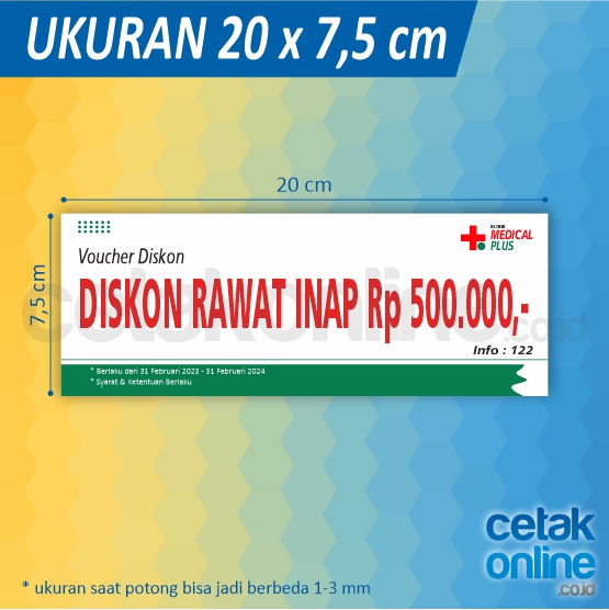 Kupon atau voucher digunakan untuk promosi suatu produk atau juga untuk kegiatan. Kamu bisa mencetak kupon atau voucher secara online atau cetak online di tempat kami, cetakonline.co.id