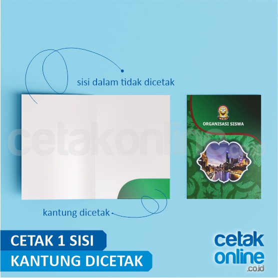 Anda bisa memilih dicetak 1 sisi, yaitu dicetak bagian depan dan belakang, namun bagian dalamnya tidak dicetak