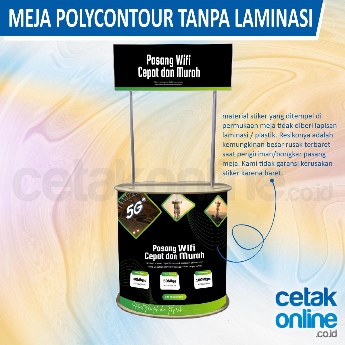 Yang pasti Anda bisa membuat desain Anda custom untuk ditampilkan di meja polycontour ini. Buatnya hanya di cetakonline.co.id , Anda bisa pesan meja polycontour dengan online.