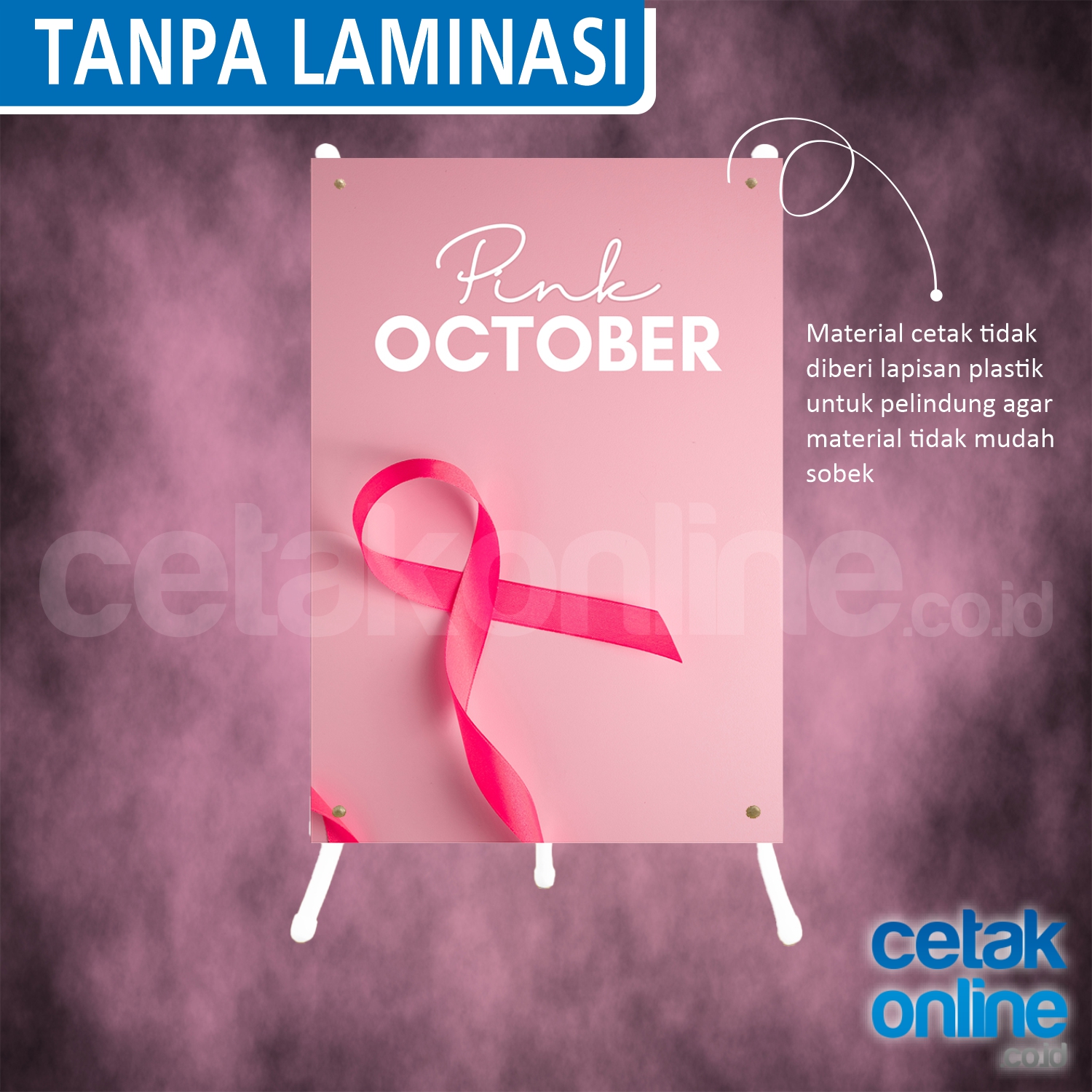 - Dicetak dengan mesin outdoor (mesin cetak banner)