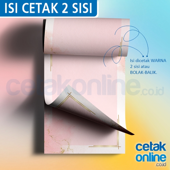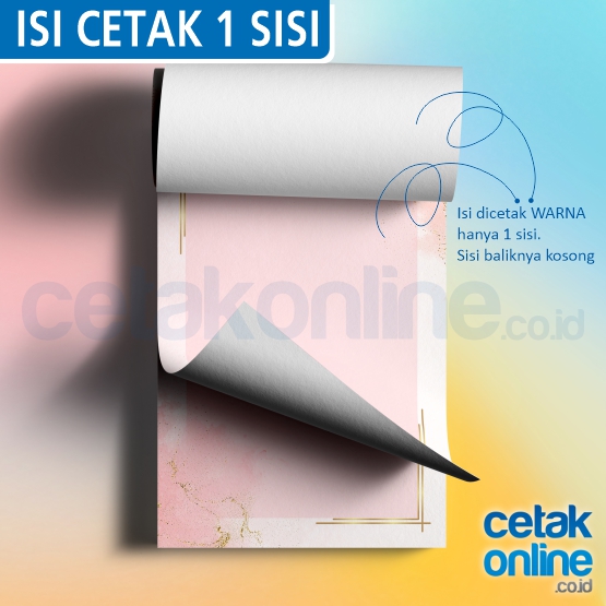 Isi kertas blocknotes bisa 20 lembar, 25 lembar, 40 lembar, 50 lembar , atau 100 lembar.