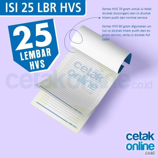 Isi kertas blocknotes bisa 20 lembar, 25 lembar, 40 lembar, 50 lembar , atau 100 lembar.
