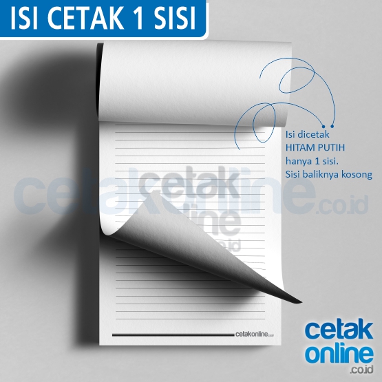 Isi kertas blocknotes bisa 20 lembar, 25 lembar, 40 lembar, 50 lembar , atau 100 lembar.