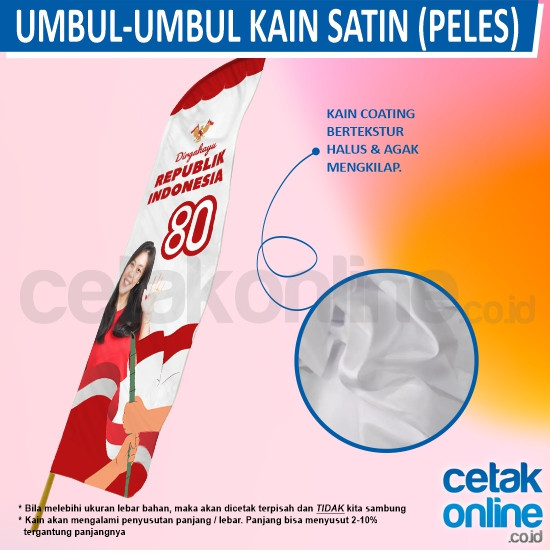Umbul-umbul adalah bendera tinggi yang biasa dipasang untuk memeriahkan suatu acara. Biasanya dipasang di sepanjang jalan menuju tempat acara. Umbul-umbul ini dari kain, sehingga bisa berkibar. Biasanya juga disebut penjor. Bisa full color dengan gradasi dan gambar berwarna. Bagian belakang tinta hanya tembus samar-samat atau cuma tembus sedikit. Tidak bisa print 2 sisi, hanya bisa diprint 1 sisi.