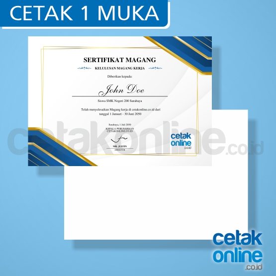 Anda bisa mencetak sertifikat atau piagam di cetakonline.co.id. Di cetak online ada banyak pilihan kertas yang digunakan untuk cetak sertifikat dan piagam.