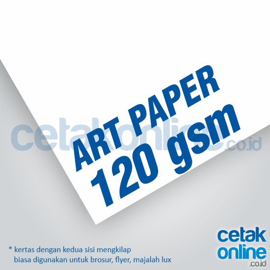 * Art Paper 120 dan 150 gram adalah kertas yang licin di kedua permukaan. Ukuran 120 dan 150 gram termasuk tipis. Kertas ini biasa digunakan untuk brosur, majalah lux, poster tipis, dll. Sleeve dicetak 1 sisi.
