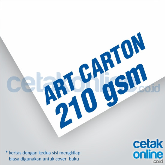 * Art Carton 210 dan 230 gram adalah kertas yang licin di kedua permukaannya. Biasanya gramatur 210 dan 230 ini cukup tebal, biasa digunakan untuk cover buku. Juga dicetak 1 sisi dan kamu bisa menambahkan laminasi glossy atau doff.
