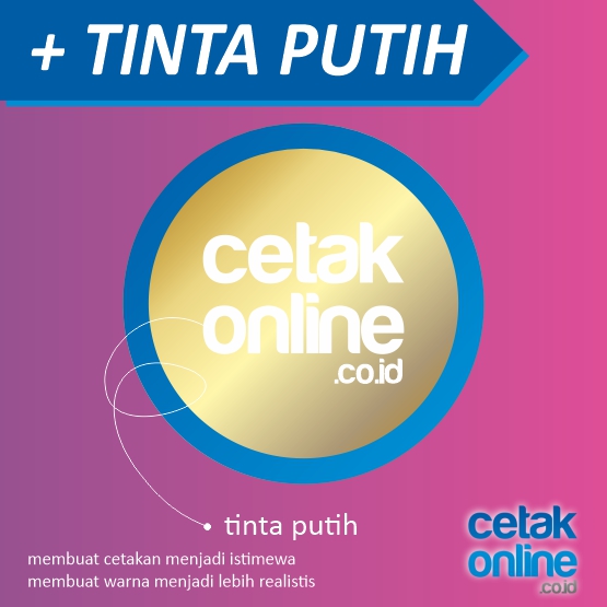 Kami tidak menggunakan tinta putih, sehingga desain yang ada warna putihnya tidak akan dicetak (artinya akan ikut warna dasar stikernya). Karena tidak menggunakan tinta putih, warna yang tampak di monitor akan mengalami penurunan kualitas warna / kesannya akan sedikit tercampur dengan warna dasar stiker.