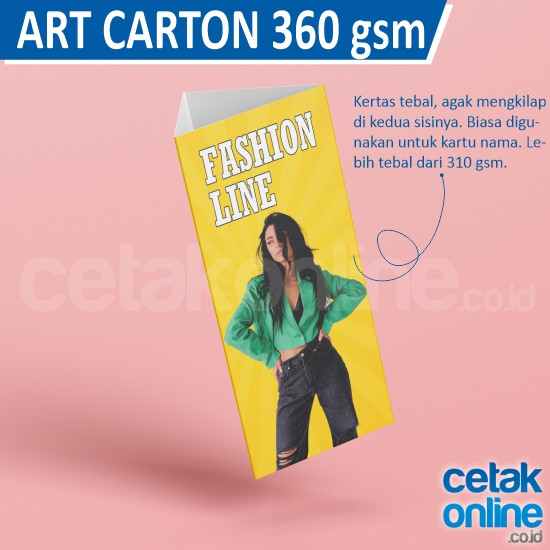 Jenis kertas yang digunakan adalah Art Carton 260, 310, dan 360 gram. Semakin tinggi berat kertasnya, maka semakin tebal. Sebagai gambaran, kertas art carton adalah kertas mengkilap 2 sisi yang digunakan biasanya untuk kartu nama dan cover buku. Kartu nama biasanya menggunakan kertas 260 gram yang lebih tipis dibandingkan dengan art carton 310 gram. Yang paling tebal adalah art carton 360 gram.