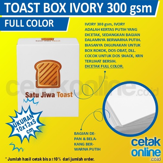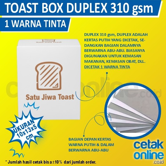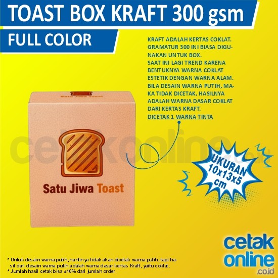Bisa cetak dus toast atau toast box di cetakonline.co.id. Tersedia beberapa jenis kertas untuk kemasan kebab ini, yaitu