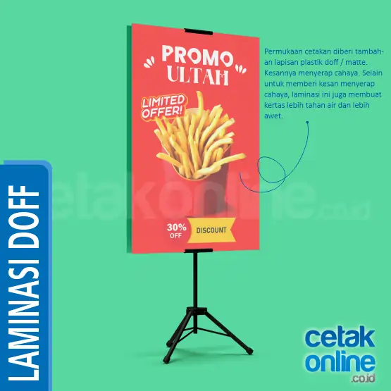 Laminasi doff : tampilan matte. Kesan yang timbul adalah mewah dan elegan.